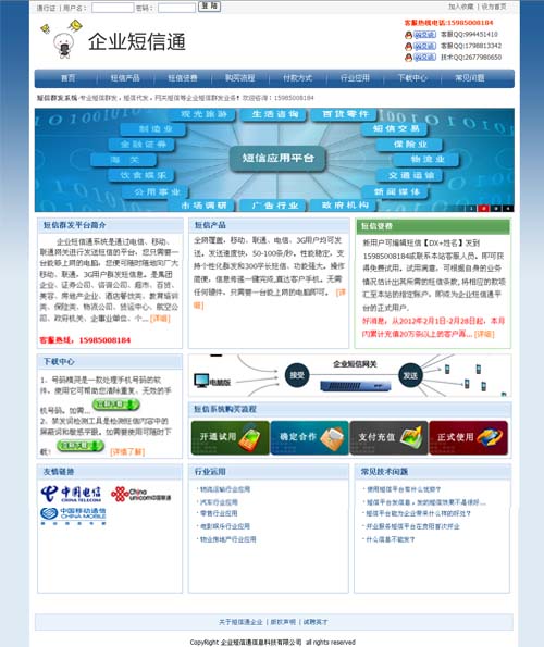 企業(yè)短信通系統(tǒng)是通過電信、移動(dòng)、聯(lián)通網(wǎng)關(guān)進(jìn)行發(fā)送短信的平臺(tái),您只需要一臺(tái)能夠上網(wǎng)的電腦,您便可隨時(shí)隨地向廣大移動(dòng)、聯(lián)通,3G用戶群發(fā)短信息。是集團(tuán)企業(yè)、證券公司、咨詢公司、超市、百貨、美容、房地產(chǎn)企業(yè)、酒店餐飲類、教育培訓(xùn)類、保險(xiǎn)類、物流公司、貨運(yùn)中心、航空公司、政府機(jī)關(guān)、企事業(yè)單位、個(gè)人等群發(fā)短信的最佳選擇。
