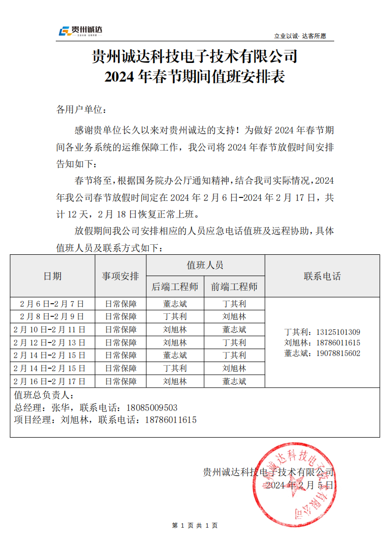 貴州誠達2024年春節(jié)放假通知